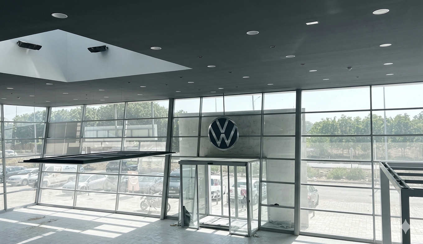 Un showroom de vehículos requiere una iluminación que resalte las líneas de los coches sin generar reflejos molestos. Nuestra intervención se centró en integrar tecnología de vanguardia en un entorno de arquitectura moderna:
